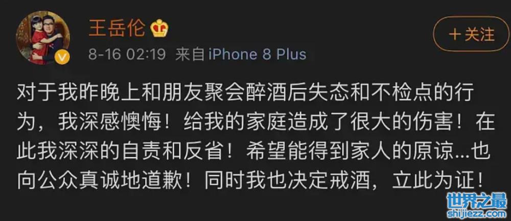 2020年,王岳伦又被拍到和女性友人在KTV霸道壁咚,王岳伦事后解释是喝多了醉酒,以后会戒酒的。