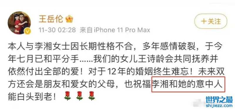 可能是想挽回自己的形象,接着在深夜发文称自己已经离婚了,没出轨(到这画风还是正常的),接着最后一句暗搓搓地内涵李湘,祝福李湘和她的“意中人”,再次被网友吐槽“茶里茶气”,可以说是相当不体面了。