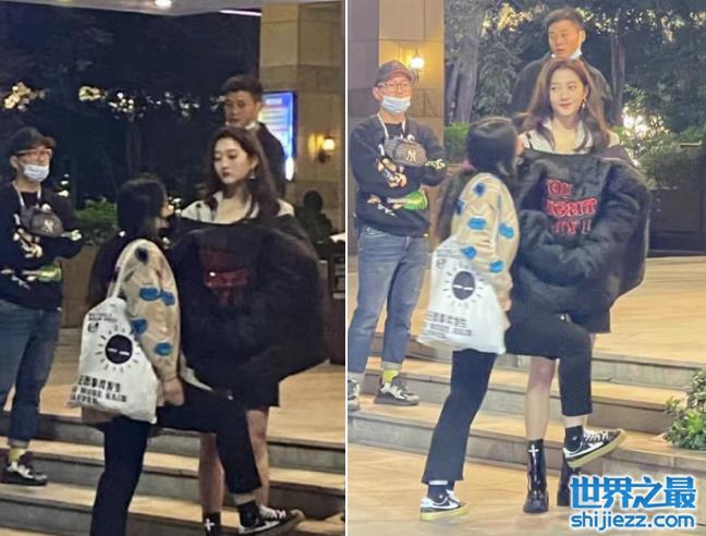 不知道是不是因为天气太冷的原因,休息候场时,关晓彤身上还披着一件大棉袄,跟助理站在一旁耐心等待拍摄,看起来相当敬业。
