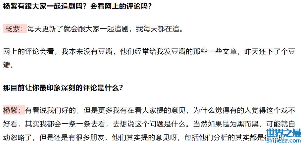 更加难得的是,在作品播出之后,杨紫也会去看大家对这部剧给出的评价。