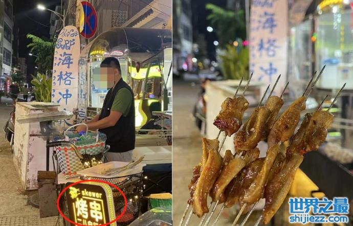 拍摄者还晒出了该烧烤店的招牌和手里的烤串作为证明。