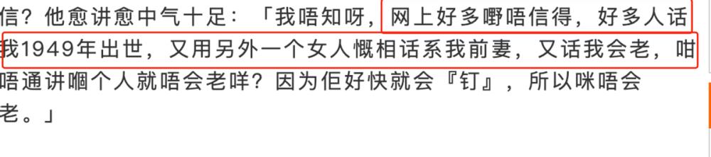 甚至,洪金宝还表示到不相信网络上的流言蜚语,自己也曾被网络上的人攻击过,一会说他1949年出生,一会又拿另外一个女人的照片说是他前妻,一会说他老。他认为这些言论是很令人无语的。