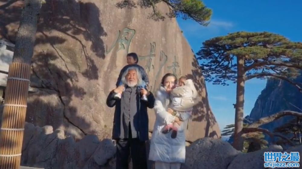 70岁张纪中携娇妻爬黄山!肩上托着儿子不怕累,满头白发笑容满面 ...