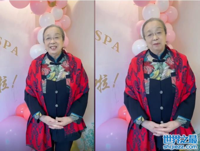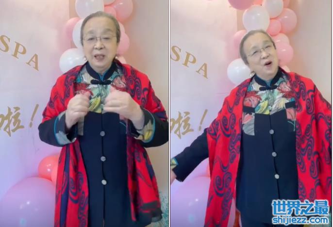 视频中,李明启身穿黑色绣花的唐装大褂,肩上披着一条红色的紫纹围巾。李明启今年已经85岁高龄,头发虽些许花白,有岁月的痕迹,但是面容上红光满面,加上珍珠耳环的点缀,整个人洋气十足,动作端庄。