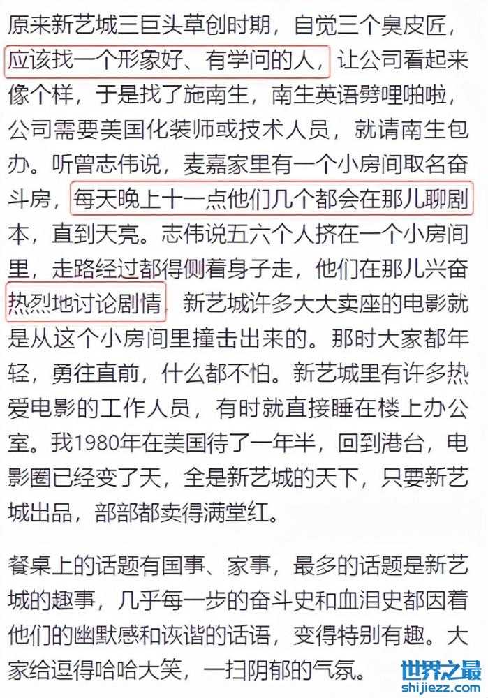 林青霞在专栏中分享了此次聚会,分享了“新艺城三巨头”(麦嘉、石天和黄百鸣)草创初期的故事。