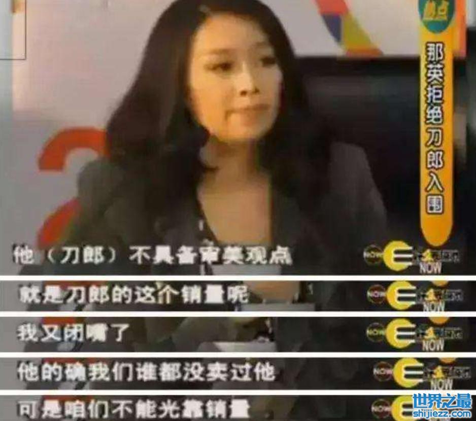 当年,音乐风云榜评选“最具影响力的十大歌手”时,刀郎是在候选名单中的。但主席那英却坚决反对刀郎评选,并称“去KTV里唱刀郎歌的都是农民,刀郎的歌不具备音乐性”。