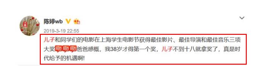 确实,作为张艺谋的儿子,张壹男可谓是顶着星光一路成长,妥妥的高起点。而张壹男也不负众望,现在选择子承父业,做一名导演。早前,陈婷曾经晒出张壹男不到十八岁就获得了上海学生电影节的最佳导演奖。连张艺谋都感叹,自己三十八岁才拿第一个奖,言辞之间,满是自豪。