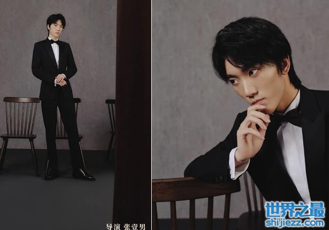 在陈婷晒出的照片中,20岁的张壹男身穿一套黑色西装搭配领结,发型也打理得一丝不苟,站着看起来身材优越,身姿十分挺拔,颇有气场。