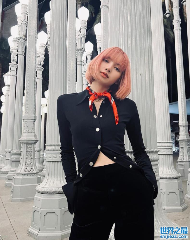 Lisa将服装别有用心地解开上下纽扣,露出白皙的皮肤,搭配金色小项链。这种服装的穿搭更加突出Lisa四肢修长。照片中Lisa的面色红润,气色极佳。