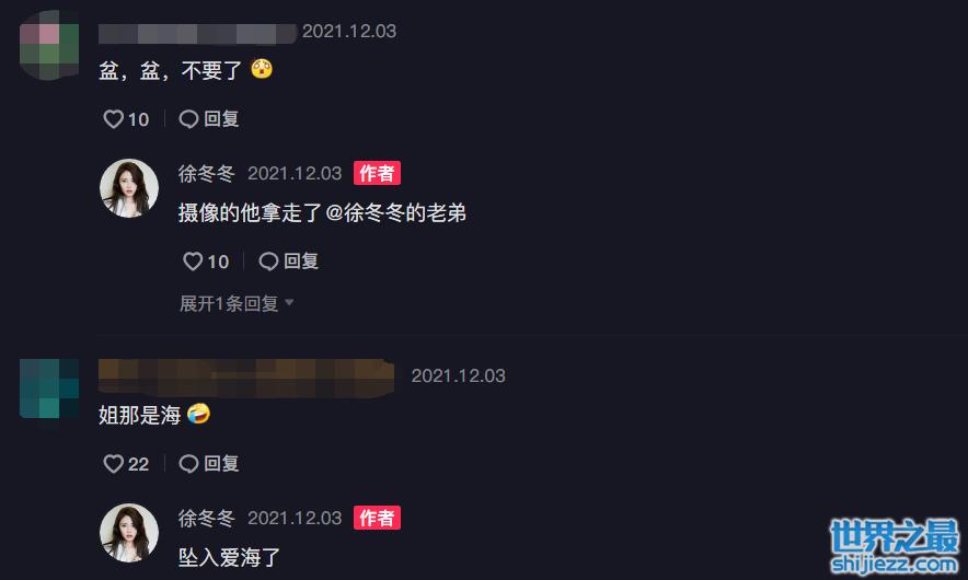 网友忍不住调侃“那不是河,是海啊”,徐冬冬也俏皮回应“那就是坠入了爱海”,也有网友注意到了被海浪冲走的盆,徐冬冬马上解释已经被摄像师拿走了,摄影师也回复徐冬冬盆已经被他拿回去泡脚了,这一来一回评论区也是热闹非凡。