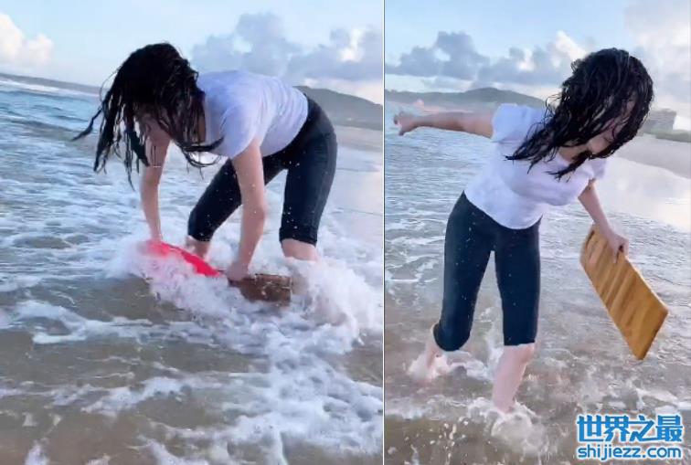 徐冬冬站海里用搓衣板洗头!被浪吓跑浑身湿透,穿紧身衣身材丰满 ...
