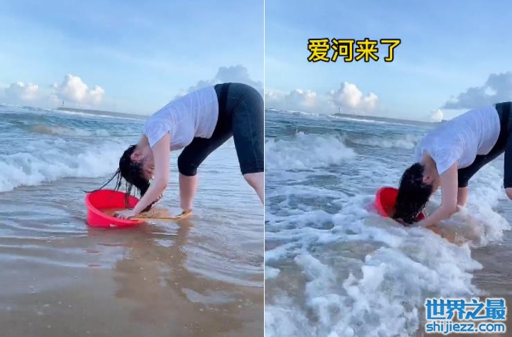 近日,徐冬冬在社交平台分享了自己在大海边洗头的视频,并直言自己坠入了“爱河”。视频中徐冬冬将一个大红色的盆放在海面上,把头伸进盆里就开始洗头。