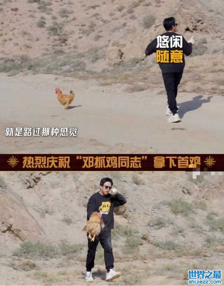 这次的录制地区是在尘土飞扬的沙漠地区,在节目视频中邓超先是完成抓鸡任务。邓超在这一个任务里似乎游刃有余,直言在抓鸡的时候就只是路过的感觉,就能轻而易举地将鸡拿下。眨眼的功夫,邓超就将遍地跑的鸡抓回笼中。