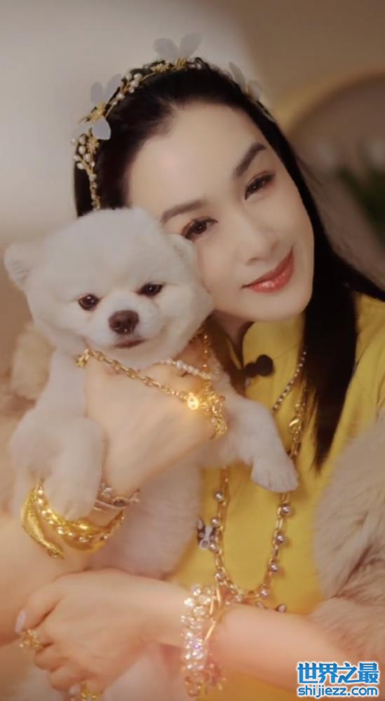 值得注意的是,钟丽缇不仅给自己戴满了黄金首饰,就连狗狗的脖子上也戴着黄金项链,在视频中相当抢镜。可爱的狗狗被钟丽缇抱在怀里,因为脖子上的黄金项链,可爱中还带着点豪气。