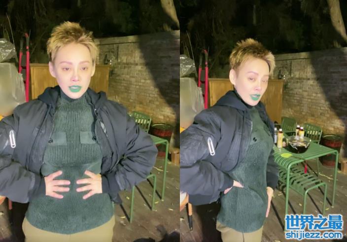 近日,宁静在社交平台直播豪宅内吃烧烤时涂的“口绿”引起网友热议。画面中,宁静一头黄色短发,搭配一件黑色短上衣,整个人都十分酷飒。