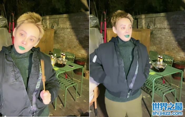 宁静豪宅内直播吃烧烤!涂绿色口红表情霸气,敞开棉袄秀小蛮腰 ...