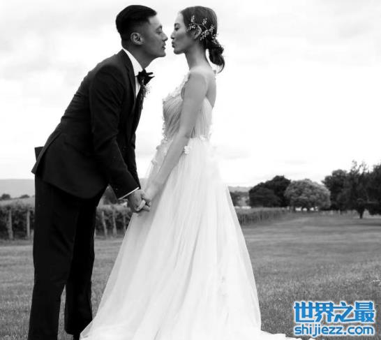 照片里,余文乐身穿黑色西装,王棠云着一袭洁白的婚纱,那时候的王棠云已经怀孕多月,肉眼可见她小腹微鼓。余文乐弓着腰俯身去亲吻王棠云,两人氛围十分甜蜜。