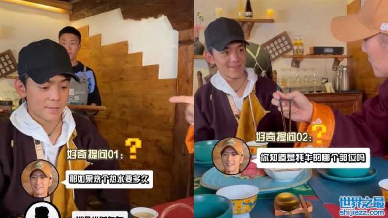 在两人品尝美食的过程中,谢霆锋在店员上菜的时候反而比在藏族环境下成长的丁真还要了解,甚至是对丁真提起一个个问题“如果烧个热水要多久”和“你知道是牦牛的哪个部位吗”。