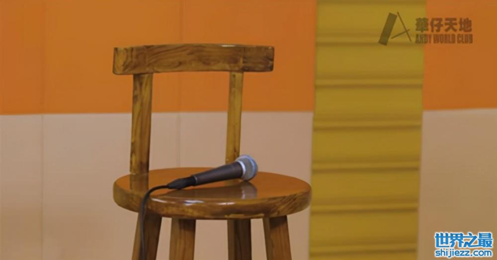 最开始画面中只有一张木质高脚凳,上面躺着一支有线话筒。
