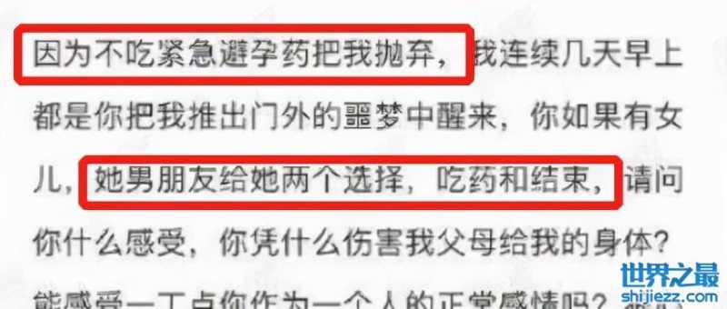 简单来说,就是这位网友自称在和周杰无套do完之后,周杰以分手为理由逼她吃紧急避孕药;
