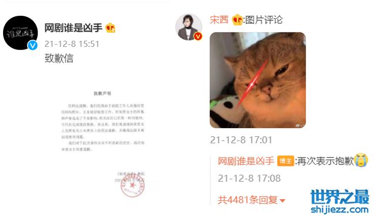 剧组迅速在当天下午发出道歉信,但也不知道是给谁道的,并没有艾特宋茜本人账号,还是宋茜自己主动到剧方账号下评论,给了台阶。