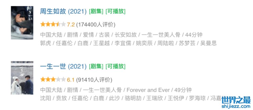 两部剧的均集都破了7000万,其中《周生如故》的评分也不错,在国产剧中达到了7.0。