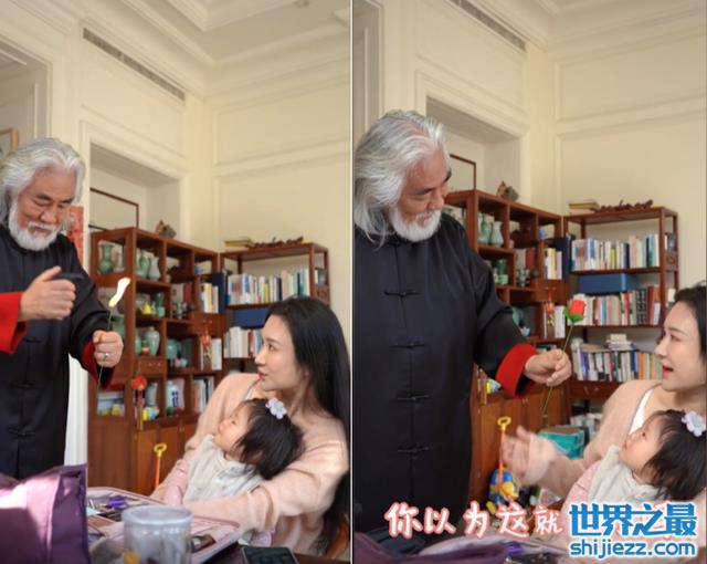 张纪中还分享了一段自己给老婆孩子变魔术的视频,他先将手中的棍子点燃,火苗窜起的时候还吓到老婆和孩子,特别是女儿在妈妈怀中看到火苗后,表情十分惊恐。张纪中见状立马将棍子变成一束玫瑰花,娇妻杜星霖看到后立马笑了,可见张纪中很有情趣。