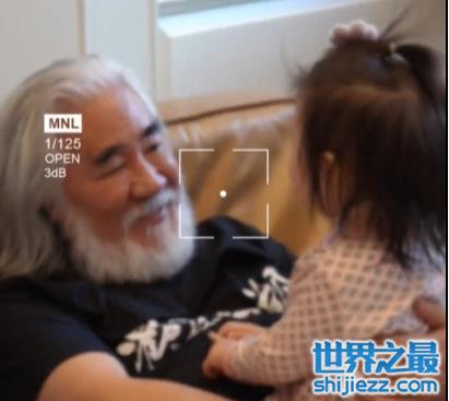 视频中,张纪中头发花白,脸上满是笑容,身穿一件黑色T恤,双手紧紧抱住女儿,眼神温柔地望向她。怀里的小女儿穿粉红灰色格子长袖,头上戴着一个花朵形状的夹子,显得甜美可爱。