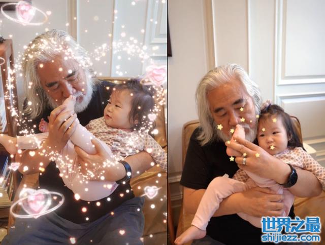70岁张纪中闭眼亲女儿脚丫!吐舌鬼脸搞怪十足,女儿肉嘟嘟好可爱