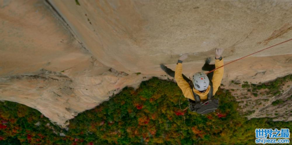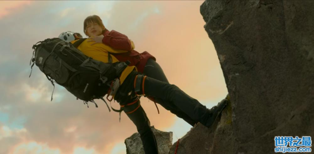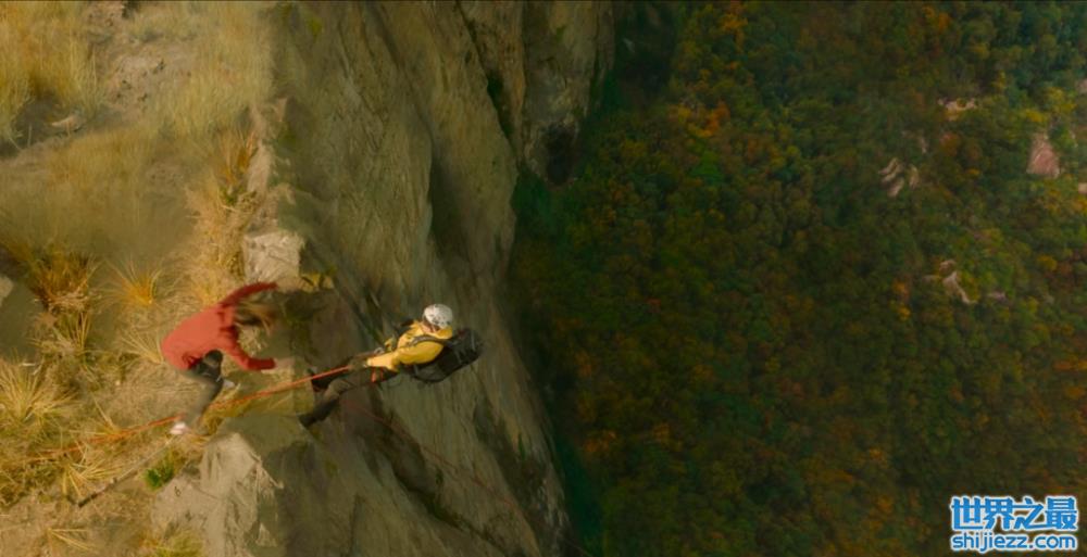 男主先是只靠一根比小指还细的绳子,并且不用任何工具辅助就能徒手爬上这么高又这么陡峭的悬崖,安全绳和保护措施都是浮云,反正男主就是这么牛!
