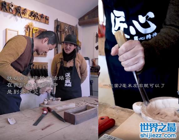 随后李亚鹏在其朋友的带领下开始了亲自上阵做木工活,只见他拿着凿子和锤子,吭哧吭哧地干了起来,一脸认真,手法极其熟练,李亚鹏和朋友也说起在他们小时候经常会做这种木工活,但现在生活条件好了,反而孩子们都不会了。