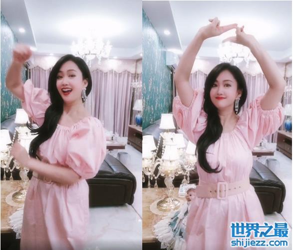 只见梁小冰身穿一件粉色连衣裙,耳朵上戴着超大珍珠耳环,戴着大波浪假发,看起来珠光宝气,十分富态。
