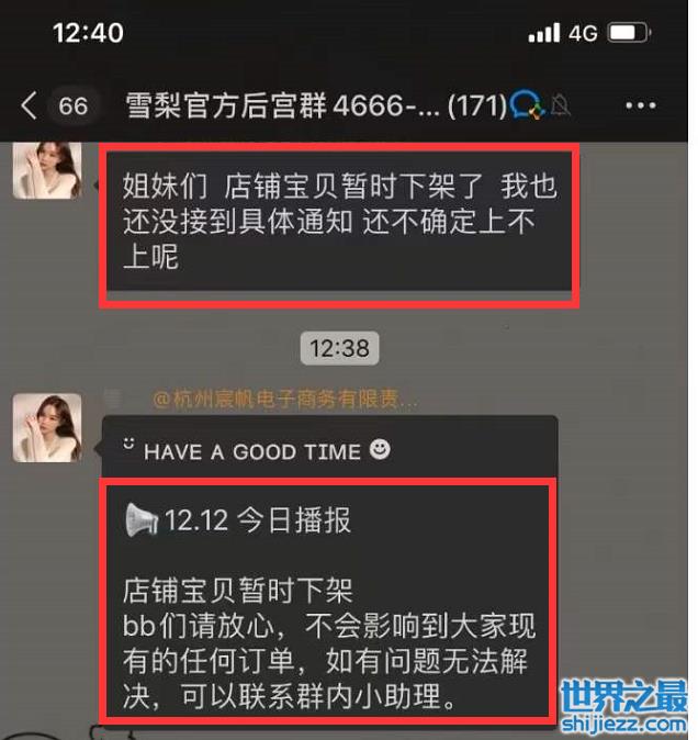 对于店铺被关的说法,日前雪梨官方粉丝群传来新消息,工作人员表示店铺宝贝只是暂时下架,请大家放心,之前的下单也不会受到影响,这也表示雪梨的店铺并没有关停,大概率是刻意躲躲风头,在风平浪静之后,店铺还会恢复运营,至于什么时候上架,工作人员表示还没接到具体通知。