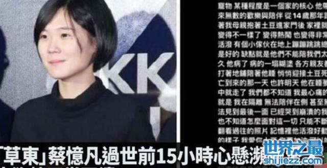 关于蔡忆凡为何轻生的原因也是众说纷纭,不少人都猜测她可能是有抑郁症。而刚好在蔡忆凡去世前15个小时,也曾在社交媒体上透露,自己爱犬“土豆”快要离开人世了,而她却必须在酒店隔离,无法陪伴它走完最后一程。这件事或许便成了压死骆驼的最后一根稻草,让她在悲痛的情绪下,选择了自我了结。