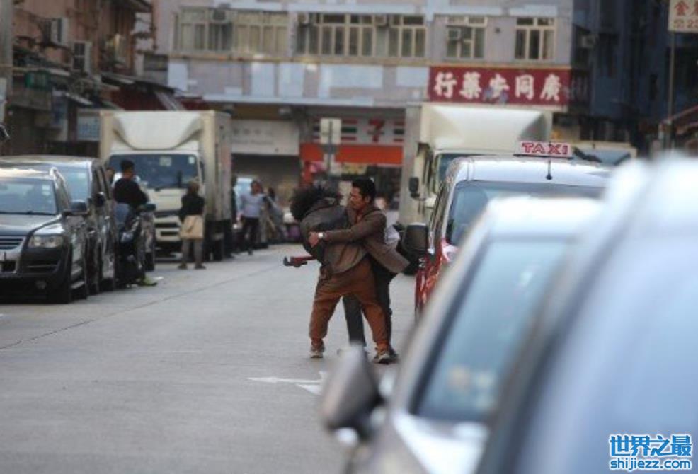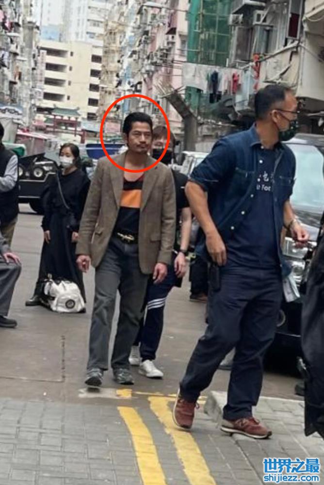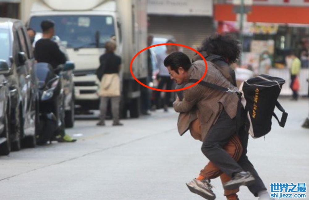 根据画面显示,郭富城在戏中穿着朴素,胡须茂盛,背着一个巨大的行李包出现在街头。他与一位爆炸头装扮的演员曾比特搭档打斗戏。在拍摄现场的街头两人扭打在一起,曾比特在打斗的过程中将膝盖踢向郭富城的下身要害。