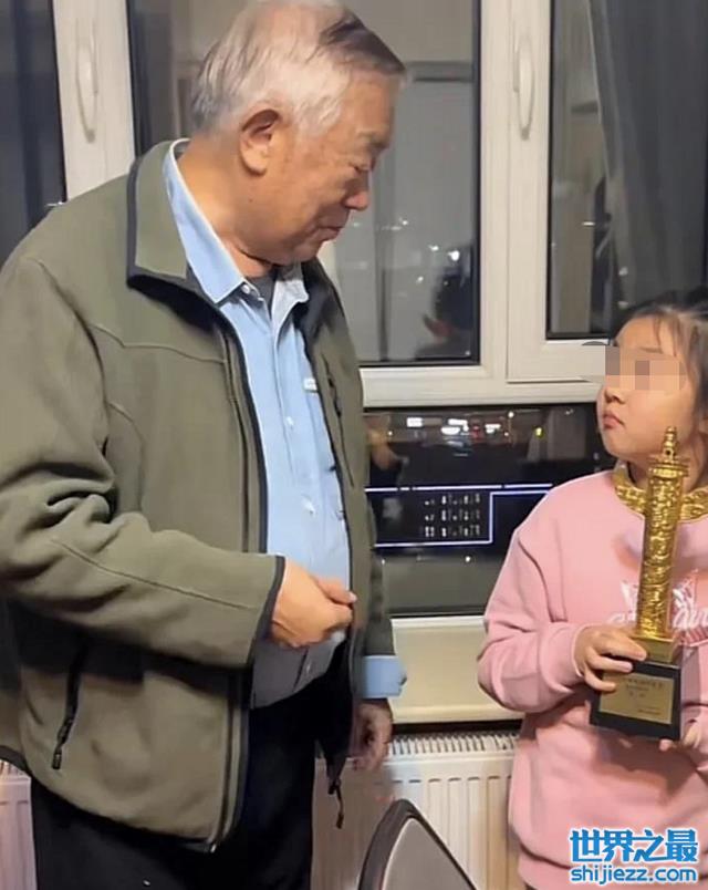 高明还拿出了另外一座奖杯跟孙女分享。只见高明的孙女捧着奖杯,瞪着大大的眼睛认真地听爷爷讲以前的故事。高明也很有耐心地跟孙女分享着自己的故事,爷孙俩望着对方,画面相当有爱。