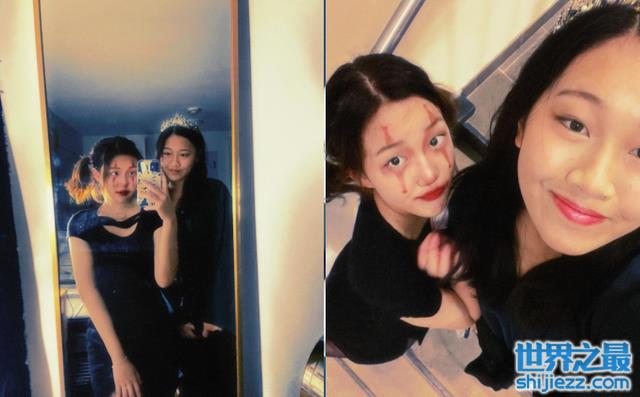 黄沐尔经常在社交平台上分享自己在美国上学的日常。前段时间万圣节的时候,黄沐尔在个人社交平台上发了与朋友的照片,她头发扎着双马尾,在脸上用红色颜料化了妆,妆面酷似小丑,可爱又俏皮。黄沐尔和朋友都穿了一身黑色紧身的连衣裙,头上都戴着皇冠,俩人酷劲十足。