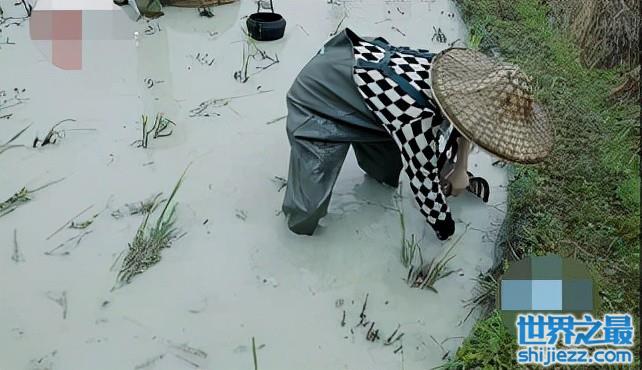 在水田耕地之后,杨超越还在这片田里摸鱼,她一手拿着鱼篓,另一只手直接伸进田里的泥水里摸鱼,而且在抓鱼途中有很多泥水溅到她的脸上,她也丝毫不嫌脏,用袖子擦了擦就继续抓鱼。杨超越的努力也没有白费,她抓到了一条又肥又大的鱼。