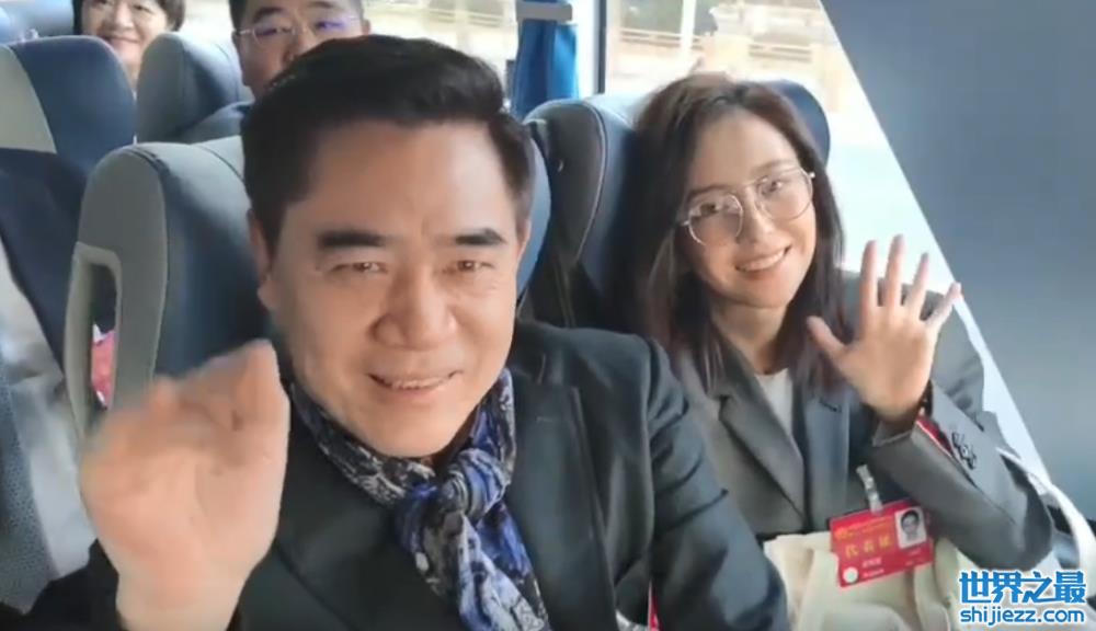 陈宝国康辉坐大巴参加会议!戴花色围巾显年轻,眉毛浓密一脸笑容 ...
