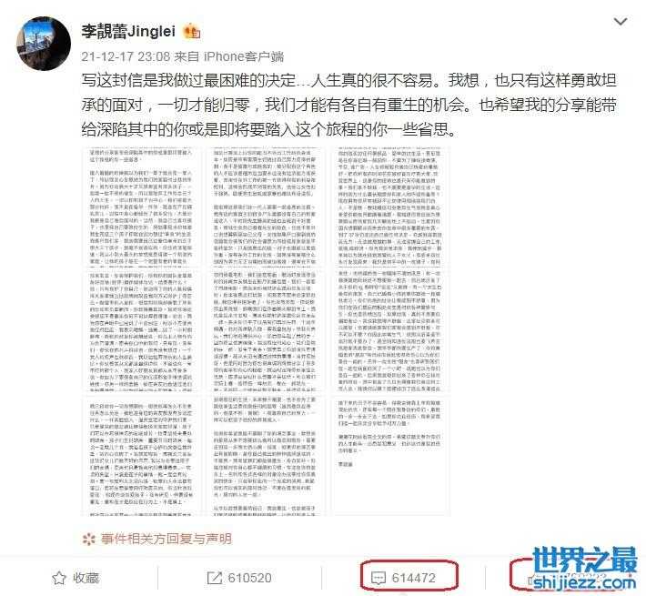 李靓蕾爆料17小时后,获得点赞1076万,王力宏事业全面解约处理 ...