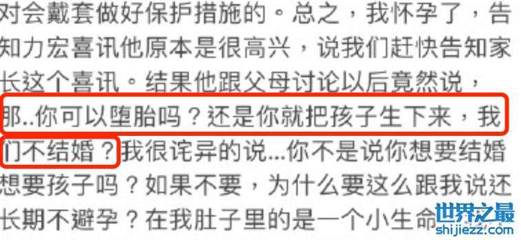 在李靓蕾罗列出的几个要点中,她表示到王力宏一直跟她表示自己想要结婚和孩子,自己与王力宏交往期间也都未做任何的安全措施和避孕措施,但是后来自己将怀孕事情告诉王力宏后,他与家人讨论的结果是让她堕胎,或者她将小孩生下但两人并不结婚。