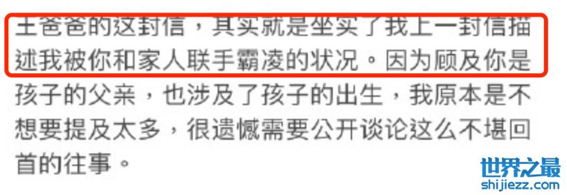 根据李靓蕾的文章,她清晰地罗列出了王大中在信中提及的不实要点,并且她表示王大中的这封信正好坐实了自己被王力宏及她的家人联手霸凌的事实。