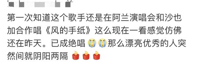如今,无论什么原因,白发人送黑发人的场面实在令人难受,如此优秀的一位艺人的生命就戛然而止了。但是人生中的一切成可贵,要珍惜生命。
