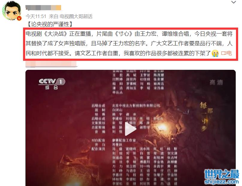 另外,节目方为了将王力宏的名字从职员表中抹掉,已经将页面给虚化,一些职员的名字能够看清,而到了王力宏的名字就彻底看不清了,央视的出手果然快,对于道德方面有问题的艺人是坚决抵制,央视下架王力宏的作品,也意味着开始对其封杀了吧。