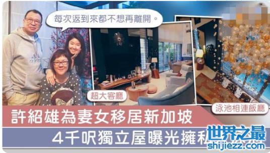 不过许绍雄的妻子本身就是新加坡人,夫妻二人长期也是两地分居生活,不过现在随着许绍雄的年纪增大,显然他已经不想在两地跑,在新加坡本就产业不少的他又购入大豪宅,还坦言道自己每次回去都不想走。