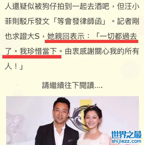 巧的是,汪小菲被传婚内出轨后,台媒采访到了大S本人,大S的回应真的是信息量更大。大S亲自回应表示:“一切都过去了,我珍惜当下”,这个“过去了”就很有意思,算不算是默认了汪小菲的那些事儿,不得不让大家猜测,大S是话里有话。