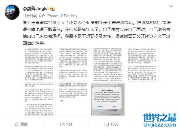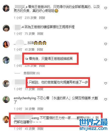 李靓蕾评论区,更多的人都是支持她:“看完后,觉得王爸爸越描越黑”,“只能说,他的爸爸帮他向妈宝再前进了一步”,“不可置信的王力宏一家”。