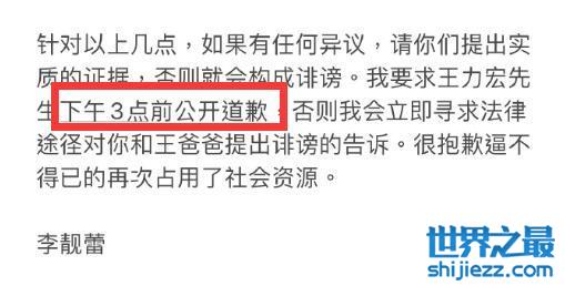 最后,给时间,下午3点之前,王力宏必须公开道歉。
