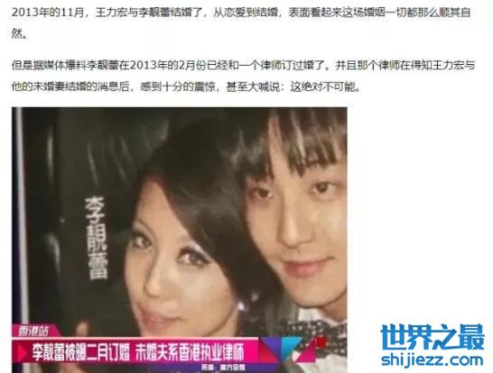 早在2013年11月,也就是李靓蕾和王力宏订婚之前,传言李靓蕾男友的社交平台保留二人甜蜜合照。当时媒体称李靓蕾和律师男友已经到谈婚论嫁地步,说是李靓蕾被曝二月已经订婚,未婚夫是香港执业律师,还说律师男友得知李靓蕾与王力宏订婚后震惊大哭,说:“不可能”。