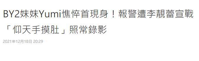 12月18日,台媒曝BY2妹妹yumi憔悴现身,报警遭李靓蕾XZ后,还照常录影。